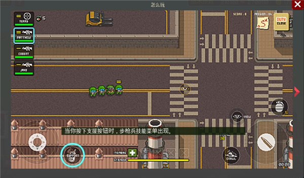 当你按下支援按钮时,步枪兵技能菜单出现。