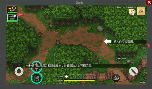 特种兵可以使用刀和隐藏技能,并看到敌人的可视范围。