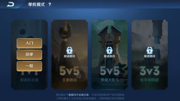 6、点击选择单机难度,可在入门、简单、一般这几种难度中,依据自身能力进行挑选。