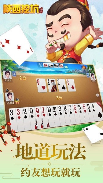 微乐陕西挖坑游戏是一款非常有趣的多人休闲娱乐游戏。其主要玩法十分简单,相信大家都已经很熟悉了,无需我过多介绍。游戏开始时,先通过叫分来确定挖坑者,然后由挖坑者从“坑”中挖出剩下的4张牌。其他玩家则联合起来对抗挖坑者,最先出完手中牌的一方获胜!感兴趣的朋友可以点击试试。