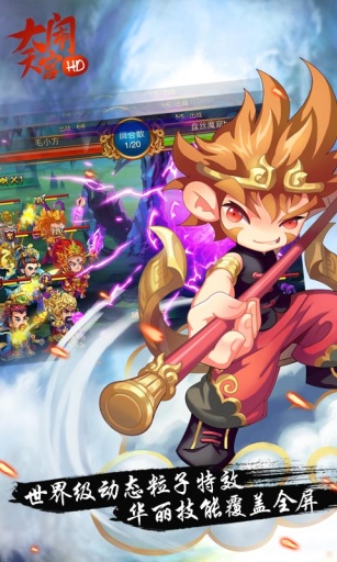 《大闹天宫HD》包含“征伐主战场”、“九天争霸”、“十二元辰殿”、“通天塔”等多个场景。其中,“征伐主战场”代表了游戏主要故事线的发展,玩家通过不断推进关卡来推动剧情,每提升一个等级就会解锁新的副本关卡。玩家在接受主线任务后,在各个关卡中完成挑战可以获得大量经验和道具奖励。每个关卡分为三个难度级别:一星、二星和三星,随着难度的增加,玩家能够获得的奖励也会相应增多。