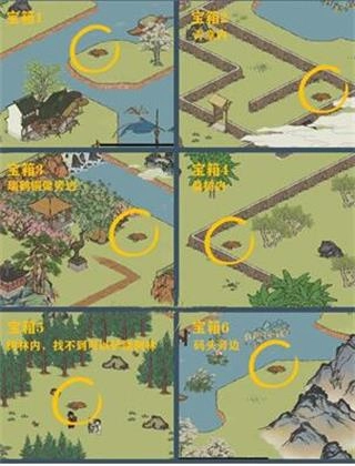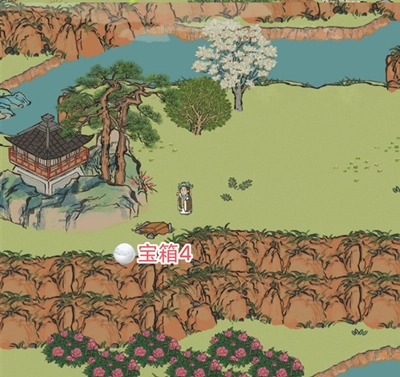 第一个宝箱的领取方式是:先完成秀坊钥匙的寻找任务,之后向下滑动操作,等把桥修复好就可以拿到它了。