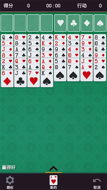 玩家需要移动纸牌达成特定目标:让四组牌各自按同花色、从A到K的序列排好。