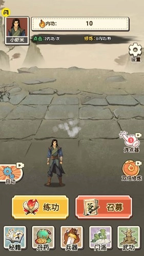 除了招募侠客之外,还设有秘籍、丹药、兵器、门派、武功等玩法,你可以通过持续培养来提升自身的战斗力。