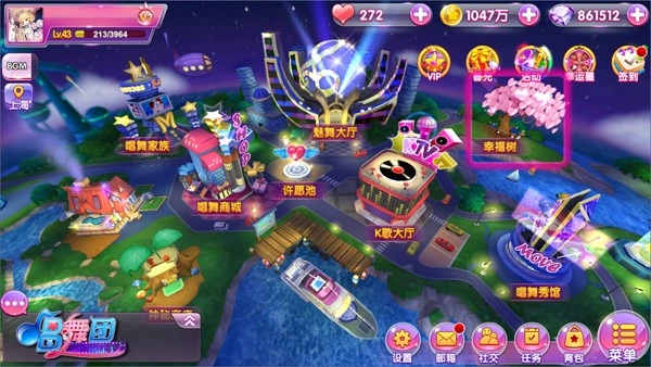 主社区偏右侧的区域里,“K歌大厅”的右上方就是幸福树所在的地方。
