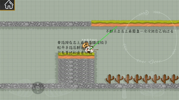 8、单指按在右上角的圆盘瞄准钩子松开手指后射出钩子在草地上进行移动;
