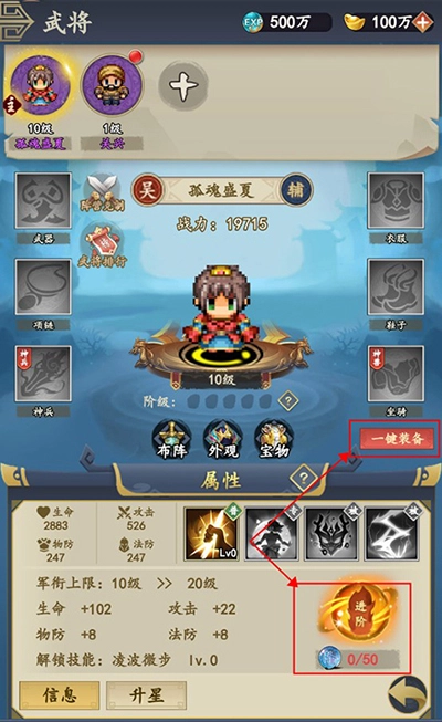 玩家能够借助武将升级、进阶、穿戴装备等方式,提升武将的战斗能力,从而更迅速地战胜敌人,让通关进程得以加快。