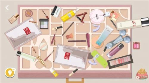 2、凌乱的化妆箱中,所有的化妆品到处乱放,你需要按收纳建议整理好化妆箱。