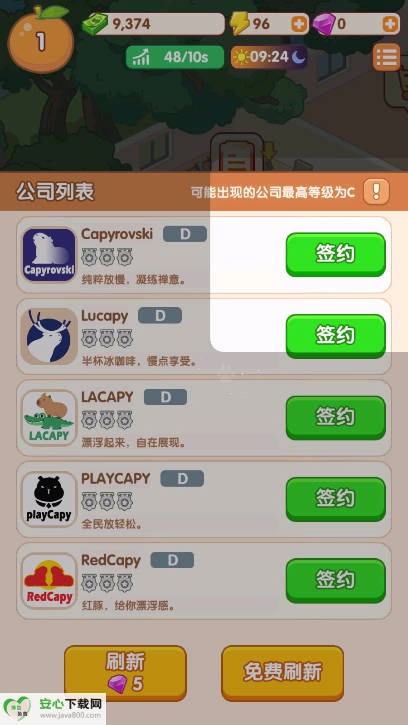卡皮生活免广告最新版,卡皮生活最新版(com.capylife.gp.us)是一款融合商业模拟与萌系水豚元素的休闲游戏。在游戏中,你将化身地产帝国的CEO,签约各类可爱的小企业,通过收取租金持续拓展自己的商业疆域。你会从一家默默无闻的初创公司开始,一步步成长为坐拥奢华产业的房地产大亨!