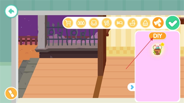 在小锤子的界面里,存放着玩家自行设计的家具,点击DIY按钮就能进入创作界面。