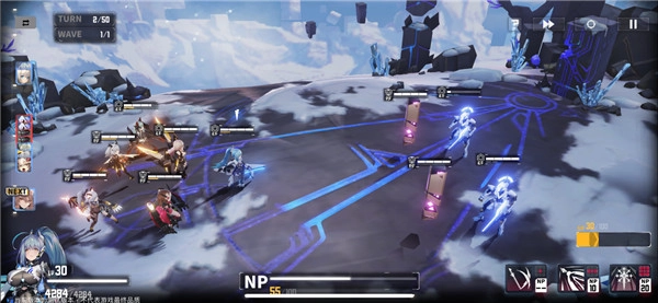 在同一张地图里,同一支部队的NP值能在每场战斗中完全保留,这就让玩家可以先在小怪战里攒够NP,到打BOSS时再集中释放技能打出爆发伤害,成为一种相当实用的战斗思路。和传统回合制游戏里单纯靠堆补给、不用思考就乱扔技能的玩法比起来,这种围绕全局资源来设计的战斗机制,显然更有策略深度,也更能带来游玩的乐趣。