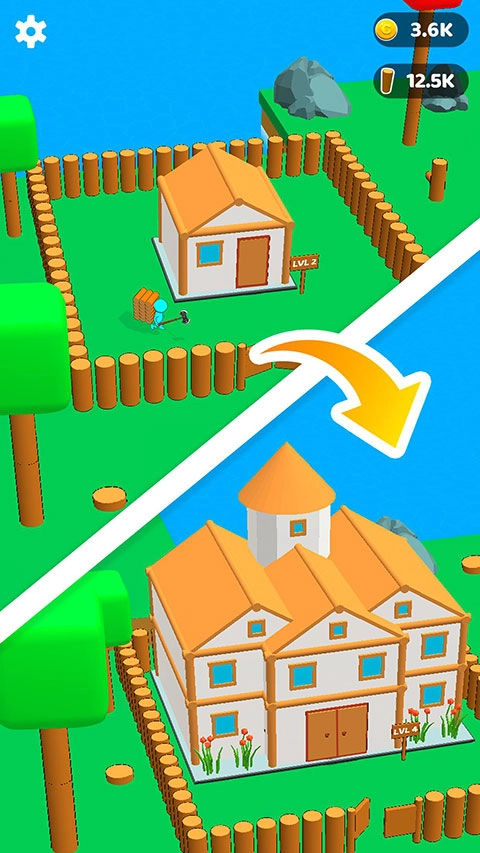 玩家借助各式各样的制作工具来建造房屋,并且通过持续砍伐木材来提高建造效率。