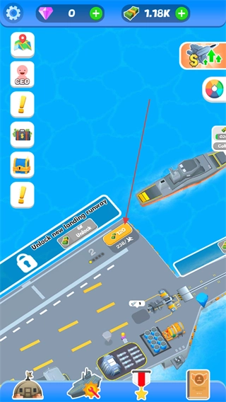 进入游戏后,玩家将化身航母舰队的船长,通过点击飞机航道来完成解锁操作。