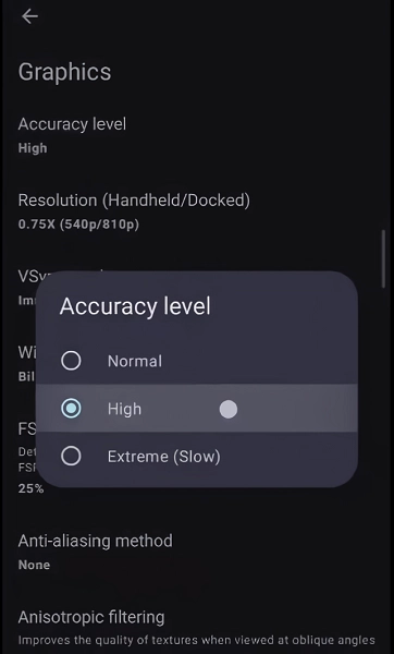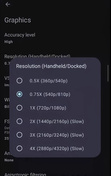 为了提升性能,分辨率一直保持在较低的0.75倍设置。要是您使用的是低端手机,选择0.5倍会更合适。
