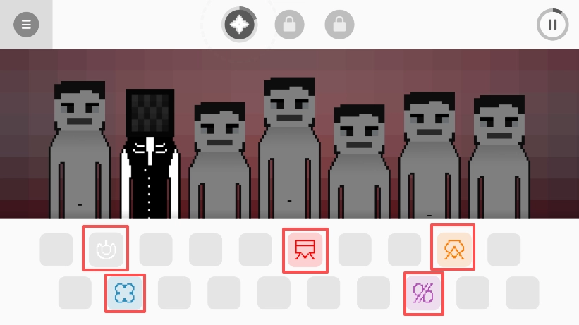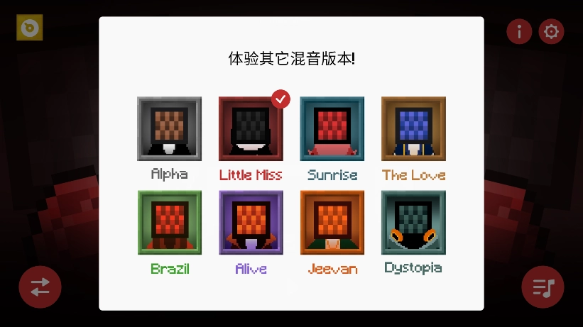 游戏里有多个方块人角色可供选择,每个角色都能搭配鼓点、贝斯、合成器这类不同的音效装饰物。玩家要依据音乐风格来挑选合适的角色与音效组合。