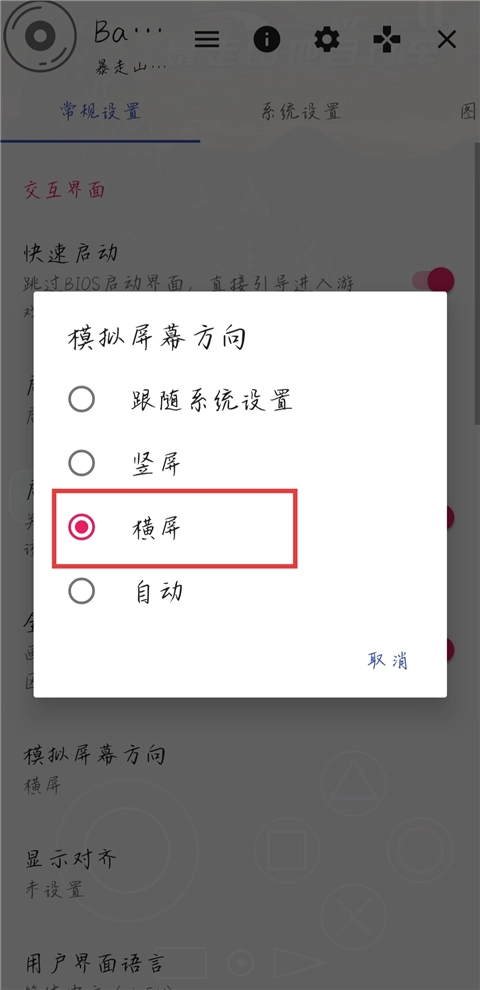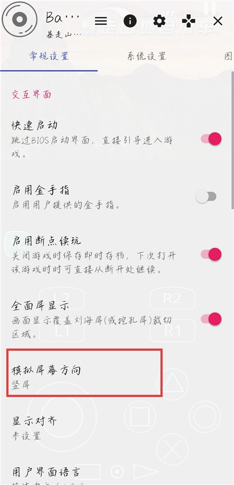 最后点击右上角×图标回到游戏中,即显示为横屏。