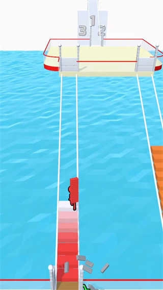 用收集到的砖块搭建桥梁以抵达下一个平台,在此过程中需确保桥梁不被他人攻占。你可以选择一次性收集足量砖块来完成桥梁建造,率先到达终点者将赢得胜利。