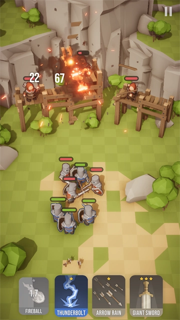 采用最基本的雷电术,火球术进行攻击敌人士兵。