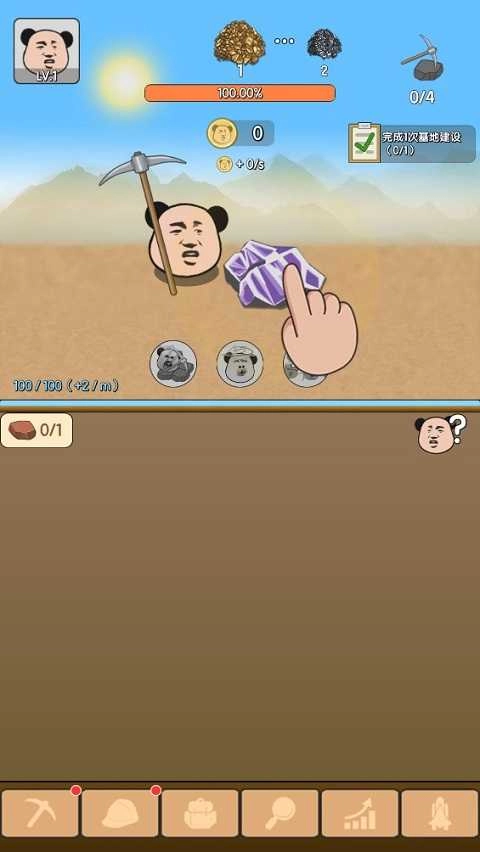 底部导航栏里,每个图标都对应着不同的玩法和功能。比如点击镐头图标,就能提升熊猫头的攻击力,让挖矿效率变得更高;要是觉得手动点击太耗费精力,还可以解锁自动挖矿这类实用的“技能”。