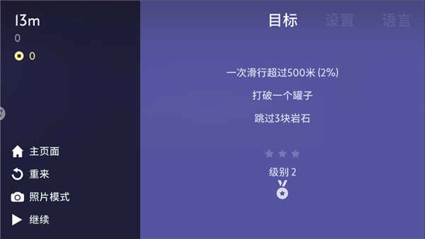 打开雪地滑翔机,进入场景后点击设置,查看当前级别的目标。