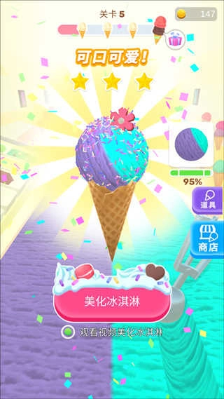 造型模拟需参照右侧提供的冰激凌风格,模仿得越到位,能获得的奖励就越丰厚。