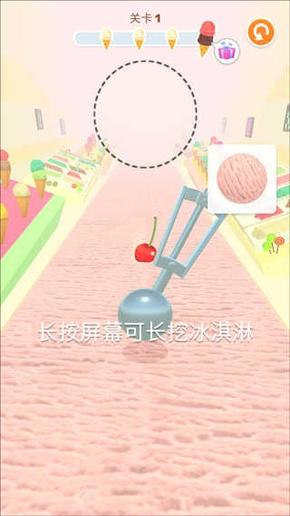 进入游戏即开始新手教程,长按屏幕可长挖冰淇淋
