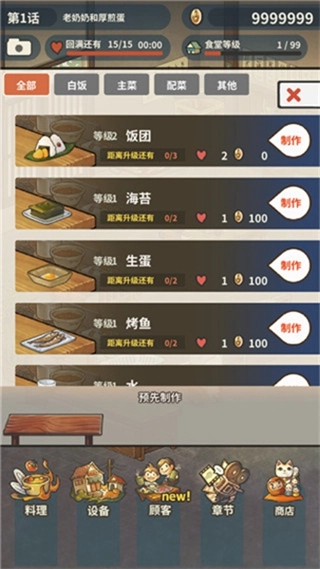 点击左下角的料理按钮就能制作料理,制作完成后会自动放置到料理摆放台上,这样就可以为接待客人准备好餐食了。