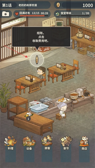 客人用餐完毕后,点击桌上的金币图标就能结算费用,从而获得经营所需的金币资源。