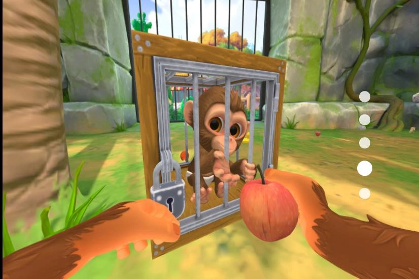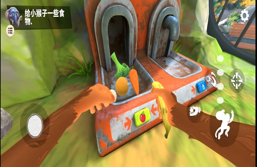 你可以通过虚拟摇杆操控猴子移动至挂锁所在处,用之前收集到的钥匙打锁,以此推动游戏的进展。