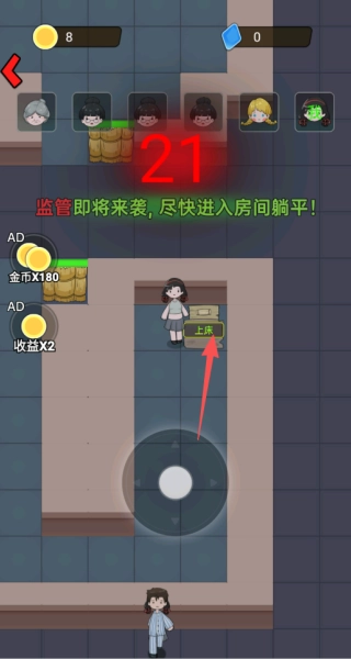 进入游戏后要迅速找到安全房间,点击躺平按钮来激活基础防御工事。