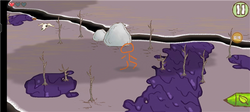 再往前走一段路,就能遇到第二只体型庞大的鼠形怪物。只要像之前那样,通过画树叶来躲避它的攻击,就能将其击败,之后就能解救出第二个火柴人了。