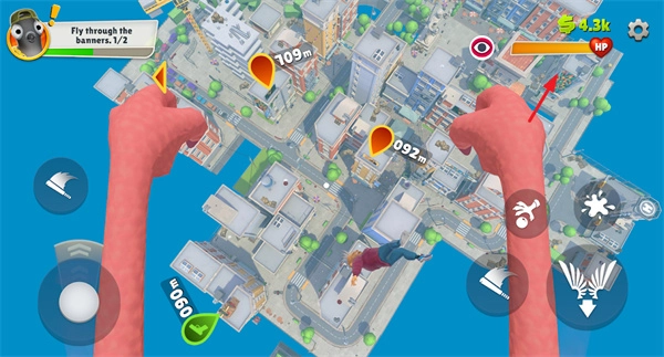 左下角的虚拟按键可操控角色灵活移动,右侧按键则对应飞行、爪子等功能。