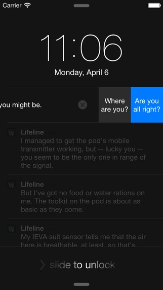 生命线安卓版(Lifeline)是一款以星际求生为主题的文字冒险解谜游戏。玩家需要通过实时通讯的方式,协助坠毁太空船的幸存者泰勒在陌生星球上维持生存,并寻找与他失散的其他船员。该游戏以纯文字交互作为核心玩法,同时融合了真实时间推进剧情的机制,从而为玩家营造出沉浸式的跨星球救援体验。