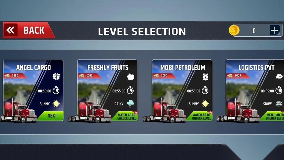 一开始,你仅能操控基础车辆执行任务,不过随着运输任务的完成,你会得到金币作为奖励,而这些金币能够用来购置性能更出色的车辆,进而增强自身的运输实力。