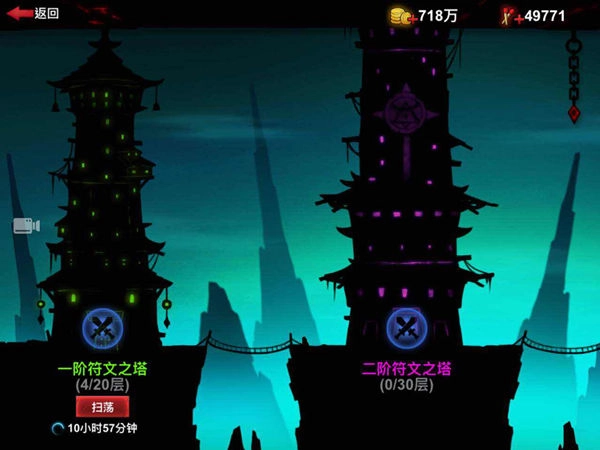 符文之塔属于爬塔类副本,包含四座不同阶段的塔:一阶塔共20层,二阶塔有30层,三阶塔含40层,四阶塔则达100层。该副本的挑战规则为需通关低阶塔才能解锁更高阶塔的挑战资格。副本的核心产出是英雄符文,每座塔在通关第四层后,将解锁扫荡功能,玩家每日可使用火柴额外购买最多7次扫荡次数。