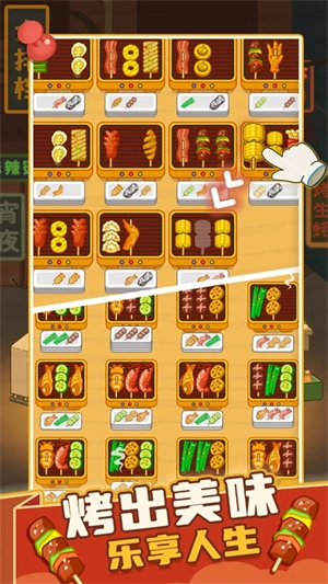 玩家能借助指尖操作,把各类诱人烤串进行完美摆盘,感受烧烤摊的快节奏挑战。