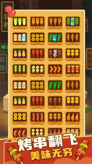 《疯狂烧烤摊》正版是一款集休闲趣味与益智合成于一体的三消烹饪游戏。在这里,你将化身烧烤摊老板,通过巧妙排列各类串串,利用不同盘子的差异化定价,持续摆摊售卖赚取收入,让摊位日益繁荣。游戏内设有多样的家园搭配模式,还有各类强力道具助力轻松闯关。每周更新的关卡任务会带来全新烹饪道具,助你提升收益。你需要眼疾手快地找准烤串位置,从喷香的牛肉串到鲜爽的烤蔬菜,每一口都令人回味无穷!更有热闹有趣的特色道具等你解锁使用!