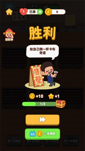 通关后即可领取金币以及星星奖励。