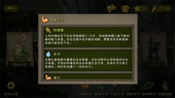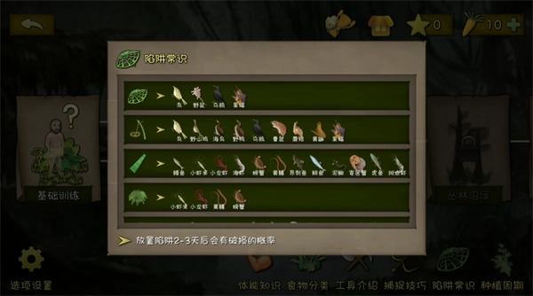 游戏里有不少可以用来投掷的工具,像石头、竹叉和弓箭。你偶尔会遇到一些猎物,比如草原上的兔子、池塘里的鱼。这时候你得用手里的投掷工具瞄准它们来捕猎,当然啦,不同的猎物得搭配不同的投掷工具才行。