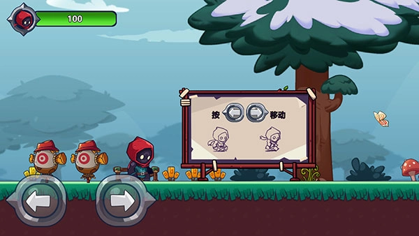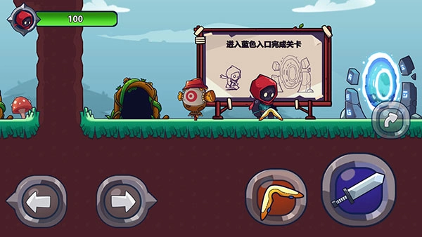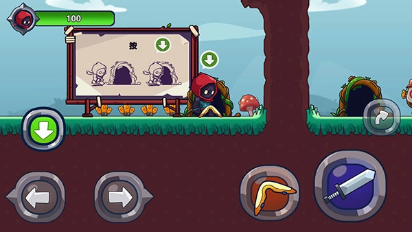屏幕右下角的剑形按钮是攻击键,它是近战攻击的理想武器,你可以用稻草人来测试它的威力。