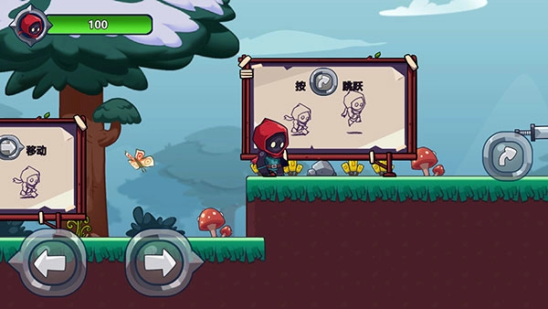 右边靠中间位置的按钮是跳跃键,按下它可以实现一层高度的跳跃,无法进行二级跳跃。