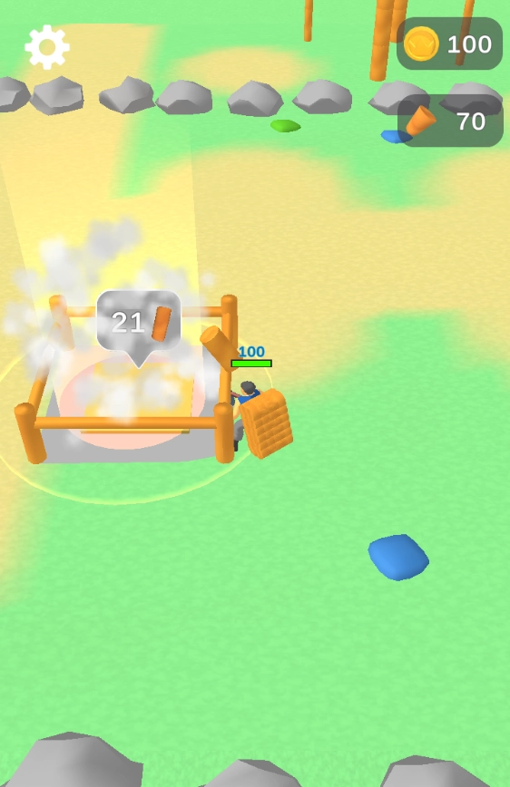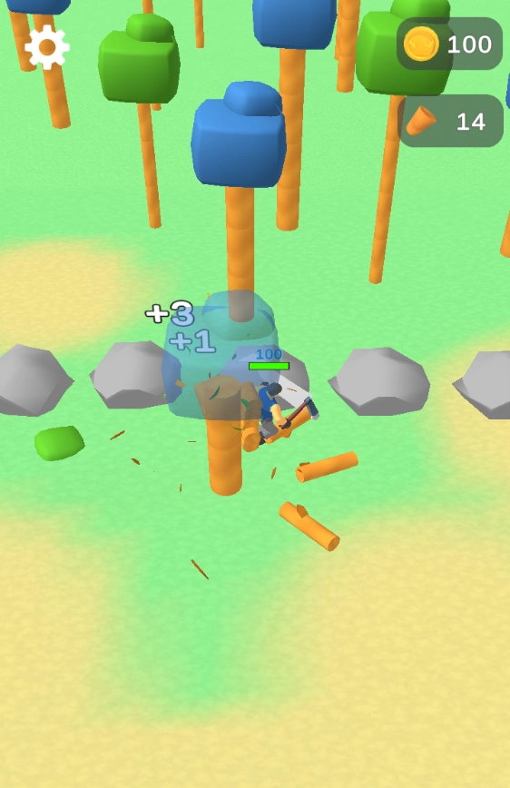 进入游戏后,通过拖动屏幕就能操控角色移动,只要靠近树木就能砍伐树木来收集资源。