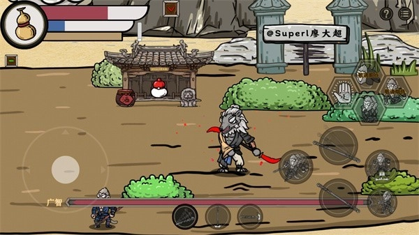 右侧的按键作用都不同,比如躲闪、重击、跳跃等。