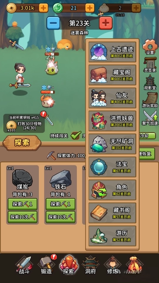 点击探索按钮,就能获取各类矿物资源,而这些资源正是升级锻造系统不可或缺的关键材料。