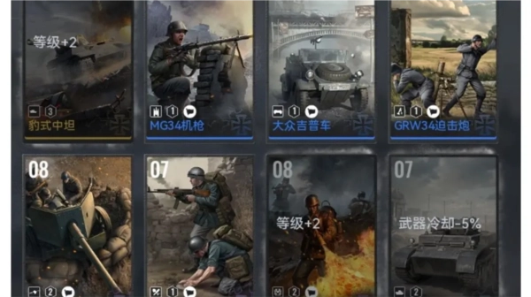 总结一下:下面这套卡组我自己用着挺顺手的。卡组对卡牌的要求不算高,豹子可以换成四号坦克,1级工兵和2级突击兵也都能用先遣队和普通步兵来替代。