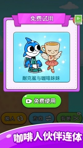 提供木棍伙伴、咖啡人等多种角色组合,不同伙伴有独特互动方式,如连体协作、技能互补,适配不同关卡挑战需求。