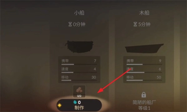 2、点击船厂,选择小船,点击制作,很快就能制作完成,再去点击装备。