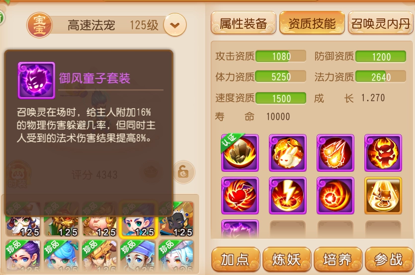 除了能为主人提供躲避效果外,御风童子的专属内丹“御风行”还能为其自身加持躲避效果,使其生存能力达到了相当出色的水平。