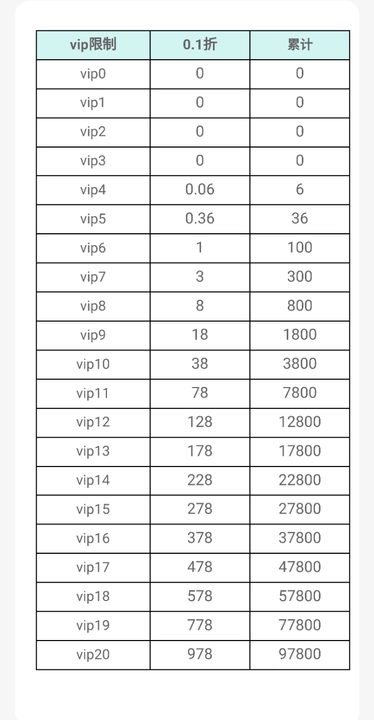 放置与召唤VIP表