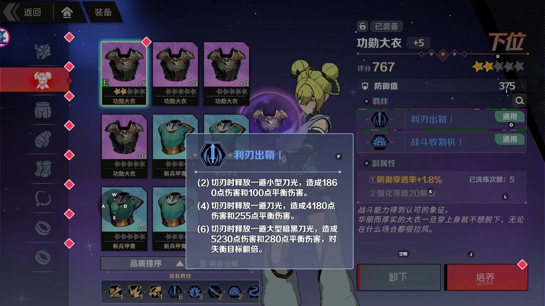 羁绊效果:切刃时释放刀光,造成伤害和平衡伤害